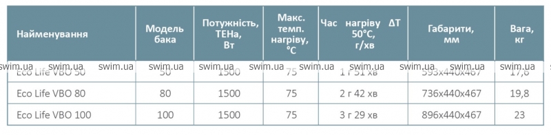 Моделі Eco Life оснащені «мокрим» нагрівальним елементом 1,5 кВт.